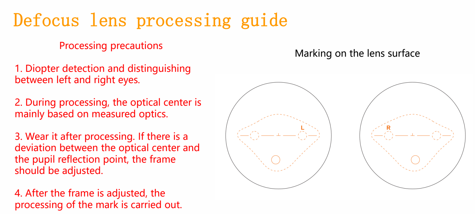 5. Defocus lenses must be fitted under proper correction, not undercorrection and over-correction